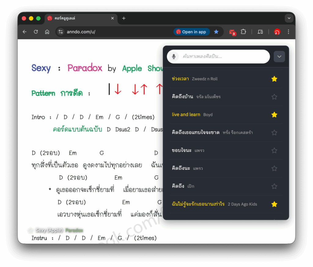 กลายเป็นค้นคอร์ดเพลง แล้วก็เปิดเล่นในหน้าเดียวกันได้เลย แต่ถ้าชอบโหมดคลาสสิกก็ยังคงไว้ได้อยู่